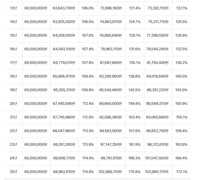 - 가입 1개월부터 환급률 100% 이상이며, 기간이 장기일수록 환급률도 올라갑니다.