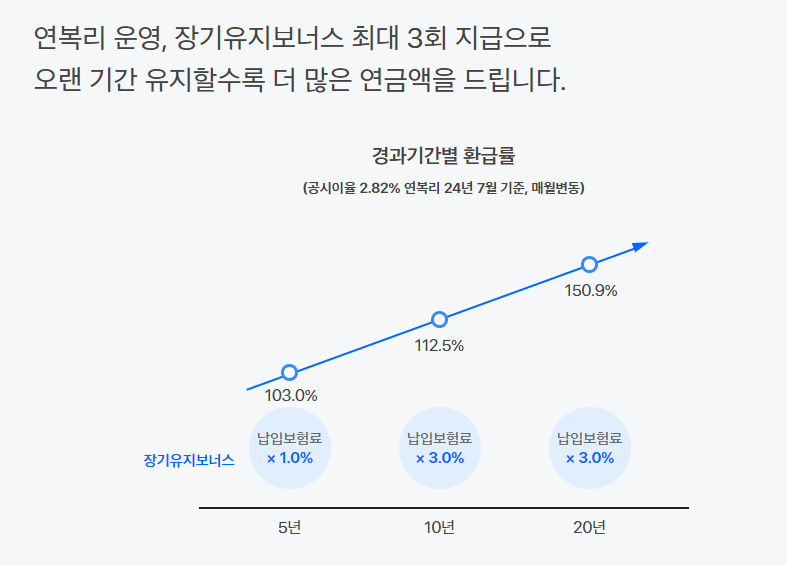 - 가입 즉시, 매월 납입하는 기본보험료 전액을 연복리로 운용하여 더 많은 연금액을 돌려주고 있습니다.