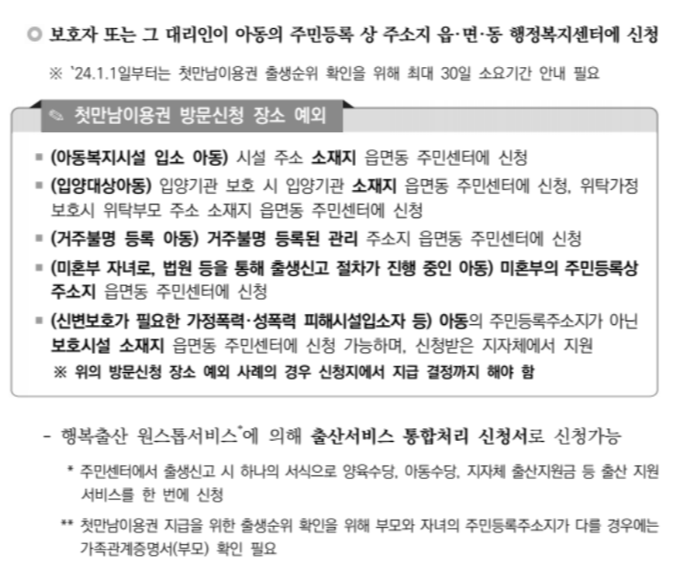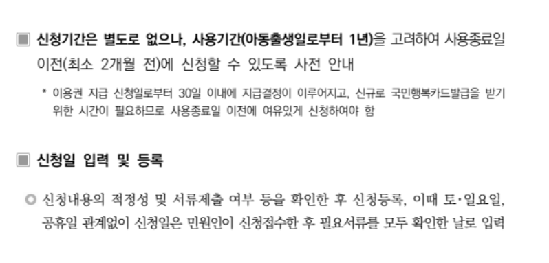 - 사용 종료일 : 아동 출생일(주민등록일상 생년월일)로부터 1년 / 사용종료일 후 자동 소멸