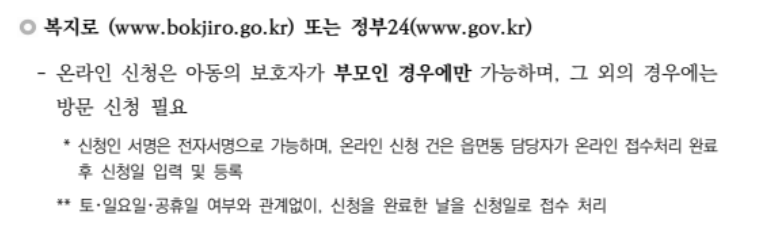 - 지급 방식 : 아동의 보호자 명의의 국가바우처통합카드(국민행복카드) 포인트 지급