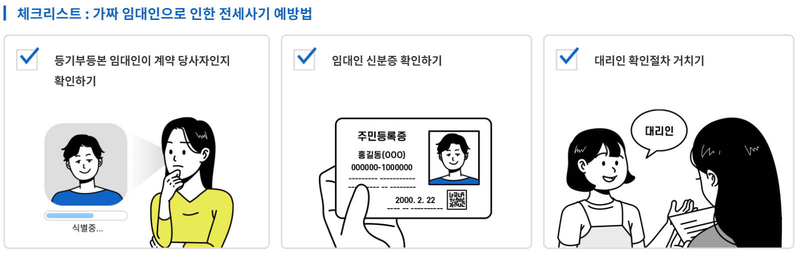 등기부등본 임대인이 계약 당사자인지 확인을 하고, 임대인 신분증을 확인하여 여러번 크로스체크를 합니다. 마지막으로 대리인이 확실히 맞는지 확인절차를 거치면 됩니다.