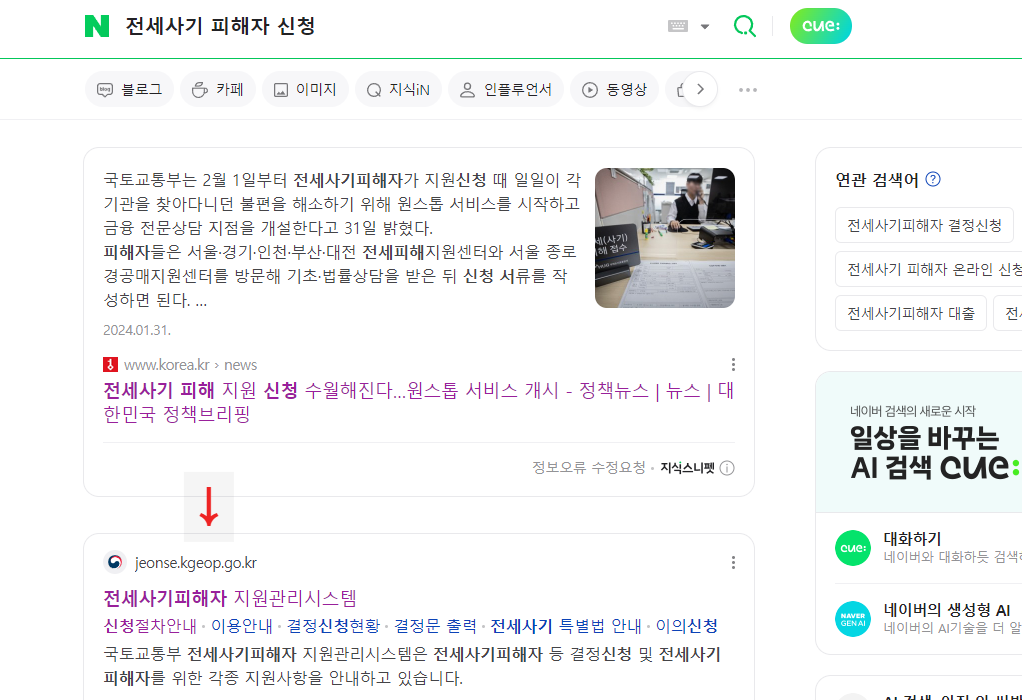 1. 검색창에 전세사기 피해자 신청 검색하기