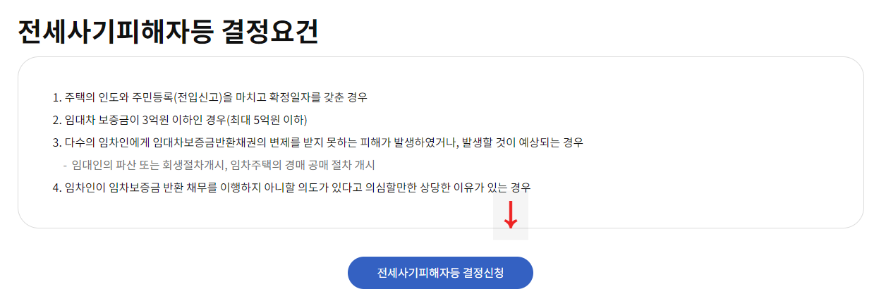 - 신청대상 : 전세사기 피해로 인해 특별법 상 피해지원 희망 임차인