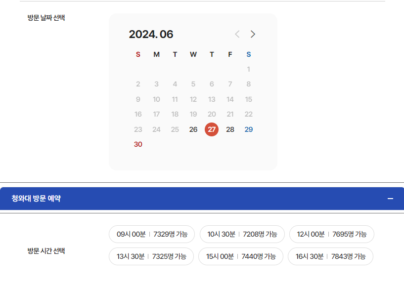- 날짜를 클릭하면 밑에 방문시간 선택이 나옵니다.