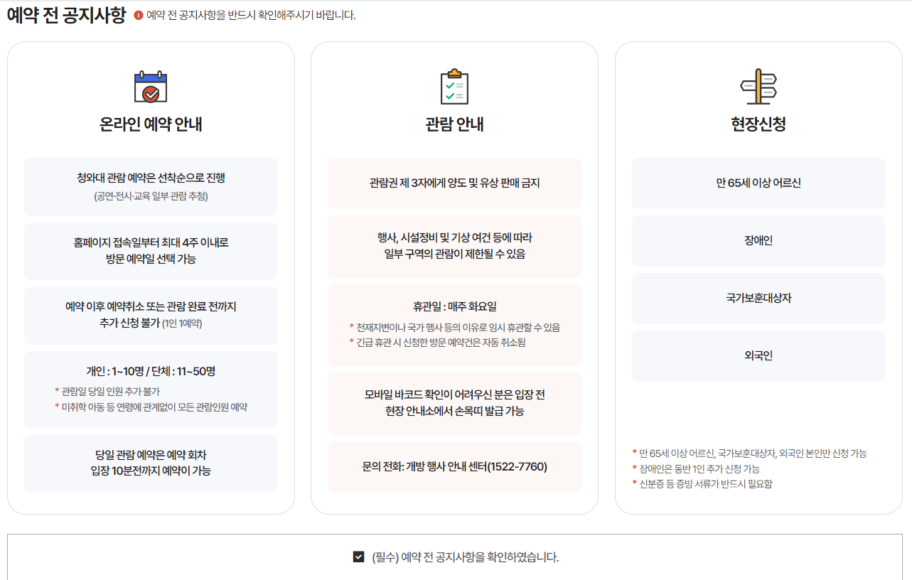 청와대 관람 규칙 및 안내 (중요)