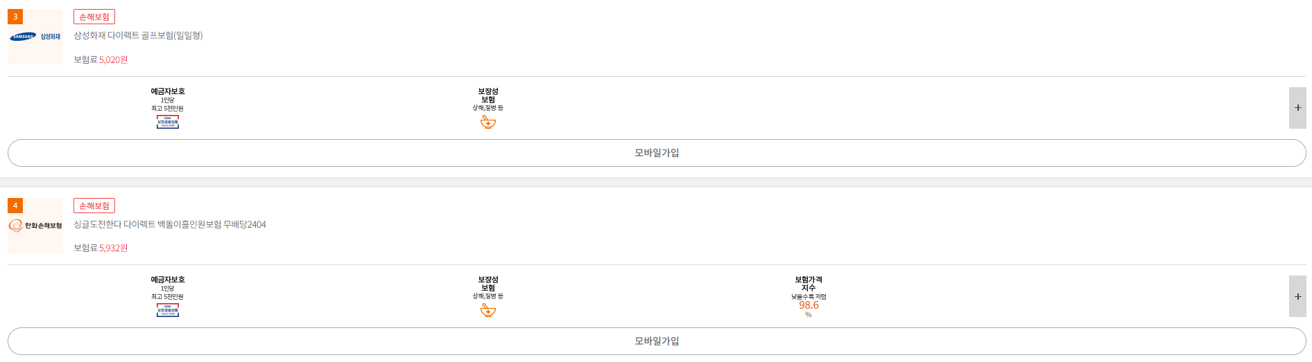 - 해당 보험사 아래 모바일 가입을 눌러주면 됩니다.